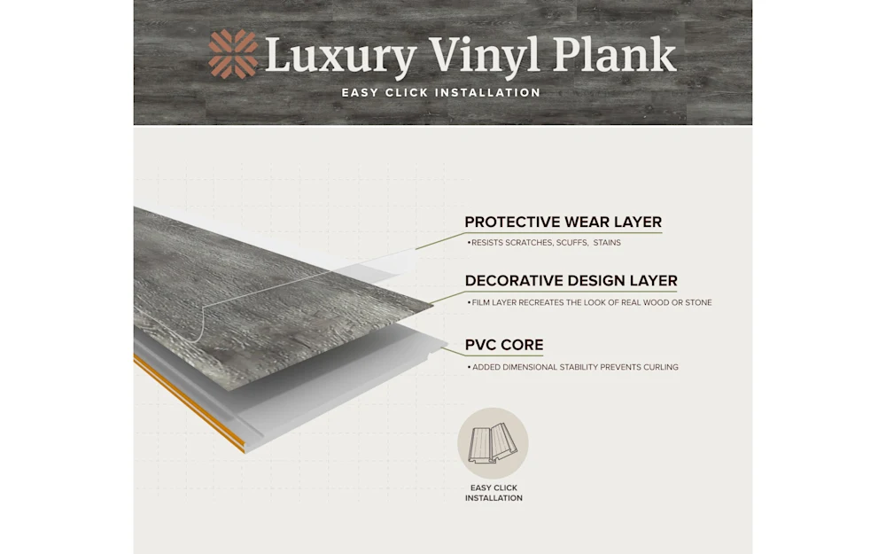 This flooring requires a quick-click installation, which is an easy project even for DIY novices. You can install it on any level of your home, provided your subfloor is flat and dry. Once your planks are laid, maintaining them is a simple matter of sweeping or mopping up as needed. With regular cleaning, your vinyl flooring could provide you with a lifetime of service.